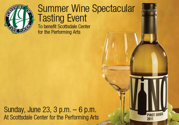 Our first time attending AJ’s Summer Wine Spectacular Tasting Event at the Scottsdale Center for the Performing Arts, today, 3:00 p.m. – 6:00 p.m.  This event featured tastings of more than 40 wines, all under $12.99!! Wines were complemented with fantastic variety of gourmet specialties from AJ’s.  The event also featured a silent auction.  Would you believe, this event is in its 20th year (so I’m told)?