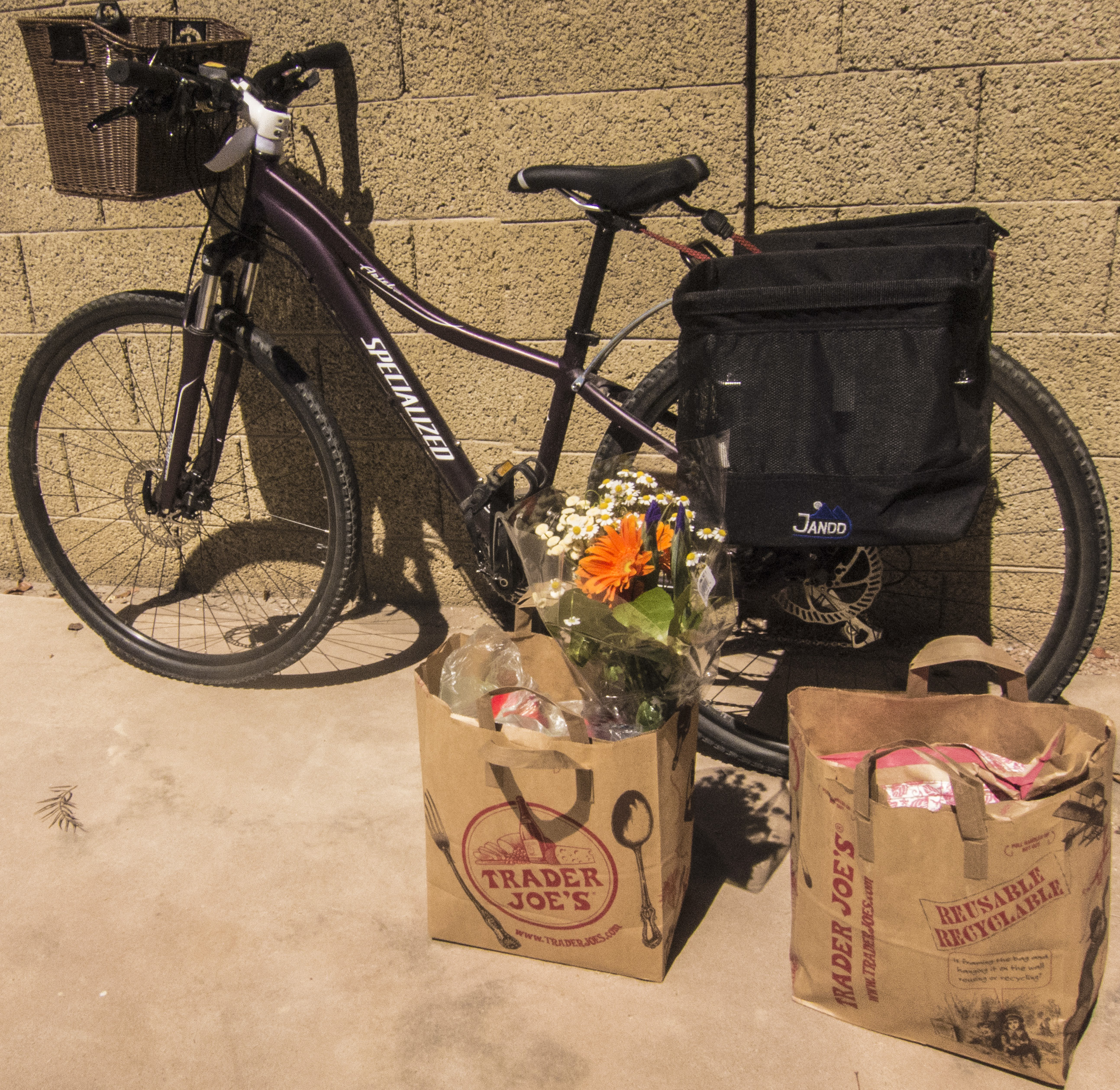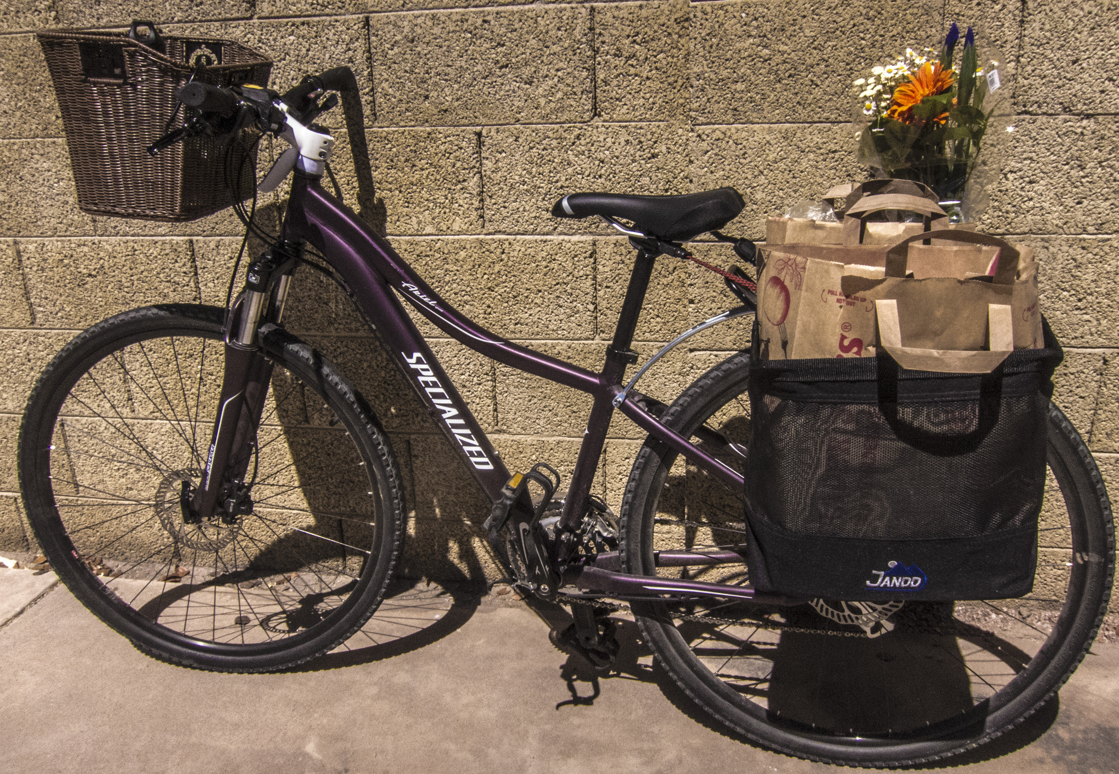 • I use my bicycle to carry my groceries.  I have two side packs that will fit a full bag of groceries.
