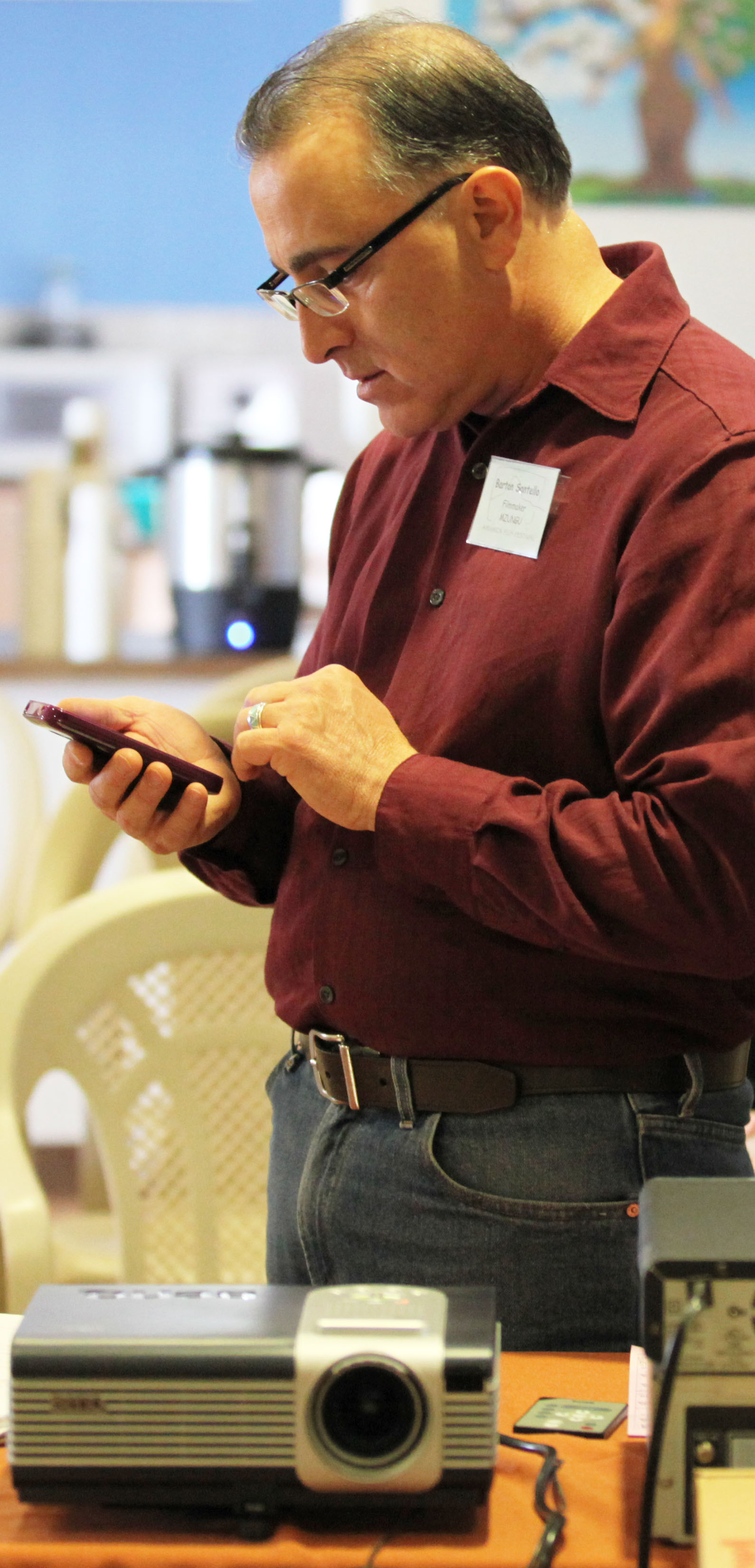 A table set up at the Arivaca Film Festival with DVD’s and information about the Film Festival. Middle photo is Bart’s Film Festival “equipment.” T-shirts were available at the Arivaca Film Festival for $15 each.