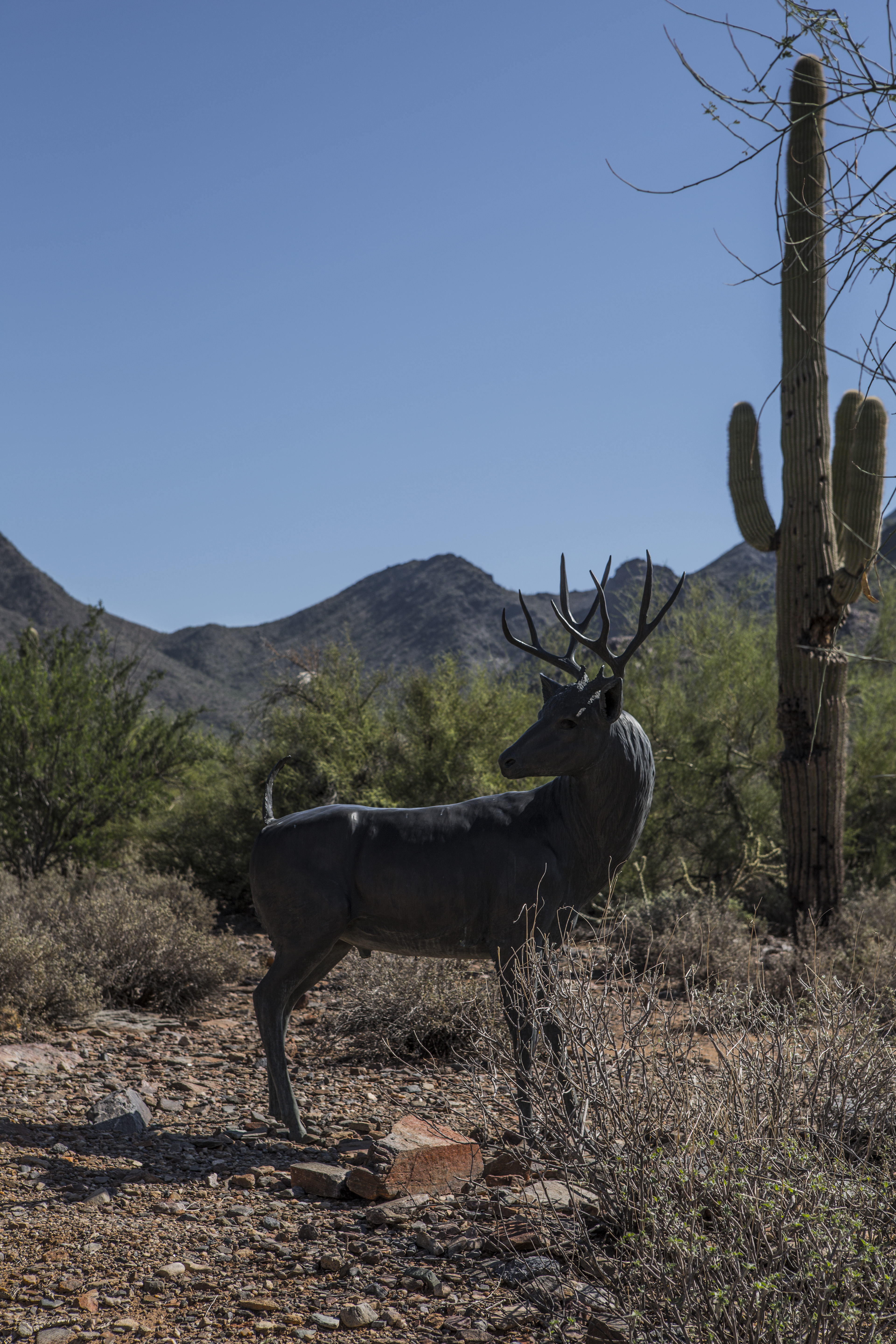 You can view this permanent art by driving Thompson Peak Parkway to Bell Road. Turn right on Bell Road and drive approximately one quarter to one half mile. The art is on the north side of Bell Road. Enjoy!!